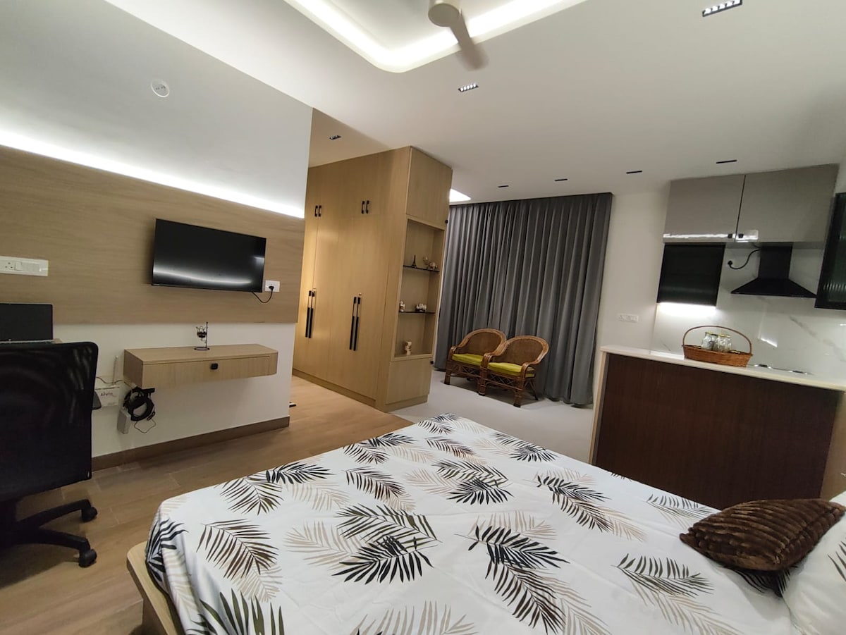 Dobro došli u vrhunski studio apartman namijenjen parovima i svima koji žele da se počaste luksuznim boravkom u blizini Manyata Tech Parka. Pažljivo uređen u bogatoj boho estetici, uz toplo osvjetljenje i elegantan dekor, Amavi nije samo smještaj, već i doživljaj. Bilo da planirate romantični bijeg, slavite posebnu priliku ili jednostavno uživate u brizi o sebi, ovaj prostor je osmišljen tako da svaki trenutak bude poseban.