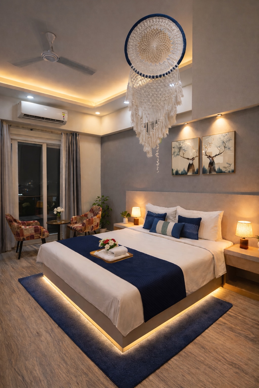 Romantičan studio apartman prikladan za parove. Tražite li udoban , privatni smještaj sa svojim partnerom? Dobro došli u ovaj elegantni studio apartman prikladan za parove. Dizajniran s udobnošću,toplinom i intimnošću na umu , ovaj prostor je savršen za parove koji traže miran odmor, odmor za vikend ili kratkotrajni romantični smještaj. Prostor Romantični par – prijateljski studio Luksuzan, prostran studio pogodan za parove u Velikoj Noidi u blizini EXPO marta.