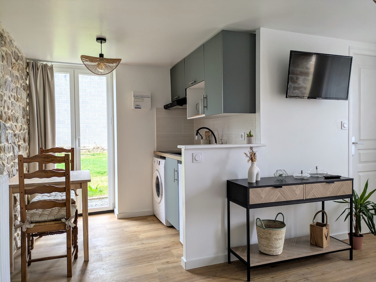 Dođite i otkrijte ovaj pažljivo uređen smeštaj i uživajte u trenutku opuštanja u svom privatnom balneu. Kuća za goste se nalazi 10 minuta od Lavala, u blizini glavnih puteva (autoput 5 min), na obalama Majen i njegove staze za vuču. Uključujući dnevni boravak/dnevni boravak/kuhinju (opremljen i namješten), prostor za spavanje otvoren za privatni đakuzi, tuš-kabinu i toalete. Uživajte u prelepoj bašti i direktnom pristupu stazi za vuču.
