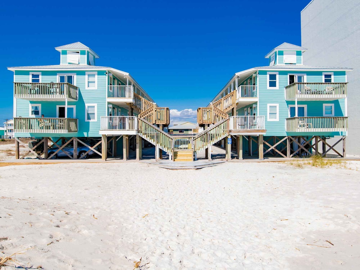Stan na plaži u Meksičkom zalivu. 2 spavaće sobe, 2 kupatila, veliki balkon. Ima mašinu za pranje/sušenje veša u punoj veličini, potpuno opremljenu kuhinju, mašinu za sudove, mikrotalasnu rernu, stakleni šporet. Ovaj stan je u neposrednoj blizini prodavnica, restorana i mnogih zabavnih objekata. Besplatan Wi-Fi, kablovska TV. Najbliži stan na plaži, a da pritom ne bude u vodi.