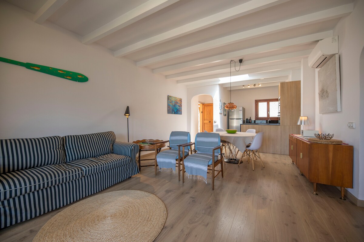 Cozy apartment just 100 meters from the beach in the heart of Puerto Pollensa. Accommodates up to 2 adults and 2 children. All essential services, supermarkets, restaurants, sports clubs, doctors, are within a 5-minute walk. The apartment features a double bedroom, a comfortable living room with dining, lounge, and reading areas, a bathroom, a fully equipped kitchen with washing machine, and a balcony perfect for enjoying breakfast in the sun.