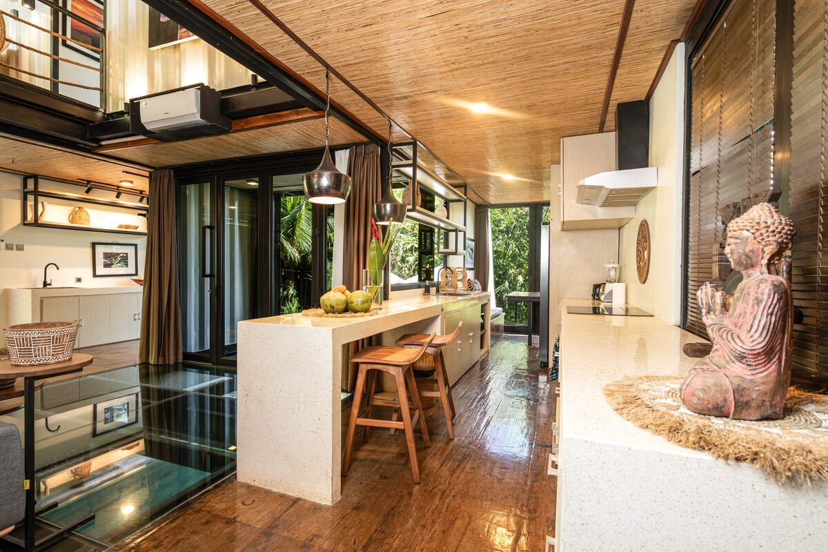 Objekat je kontejnerski dom u minimalističkom konceptu uređenja enterijera. Ima privlačan spoljni bazen, krovnu terasu sa pogledom od 360 stepeni na okean i bujne zelene površine i vatrogasni stub. Stakleni zidovi i prozori pružaju atmosferu unutrašnjeg spoljašnjeg životnog prostora. Mreže oko bazena i krova pružaju savršeno mjesto za posmatranje zalaska sunca uz čašu vina. Spavaća soba je ukrašena krovnim prozorom kako biste se divili svjetlucavim zvijezdama, jarkom mjesecu i kretanjućim oblacima poput slike uživo na plafonu.