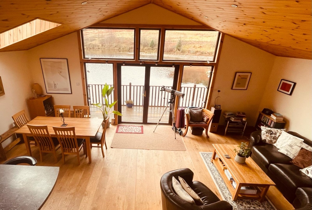 Ovo je moderna prostrana drvena koliba sa zadivljujućim položajem jezera. Vrata dvorišta iz dnevnog boravka i glavne spavaće sobe otvaraju se na veliku namještenu terasu. Odatle možete da vidite divlje životinje, kao što su Hoper labudovi, kanadske Guske, hvatači ostriga, patke i jeleni, sa planinom Šihallion u okolini. 3 velike spavaće sobe (master sa super bračnim krevetom), svaka sa zasebnim kupatilom. Idilična baza za istraživanje slikovitog srca Perthshirea i njegovih lijepih gradova Aberfeldy, Pitlochry i Kenmore.
