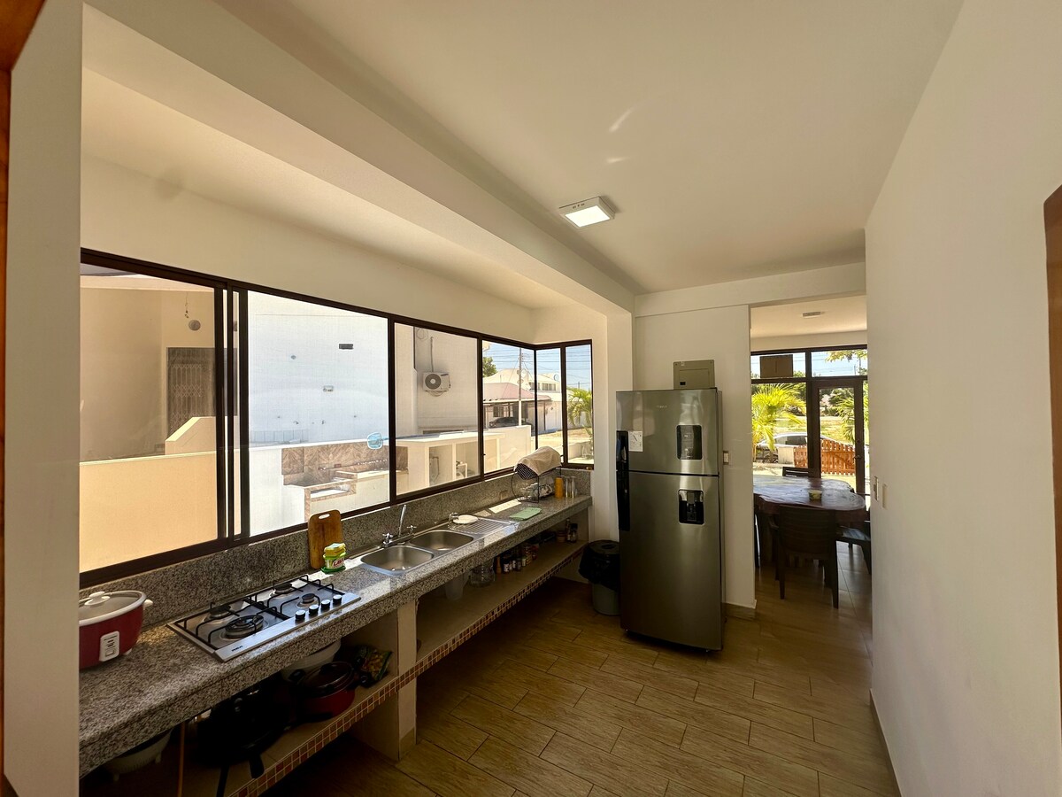 Prelepa kuća u Baleniti, Santa Elena, Ekvador, dva bloka od tropske plaže Balenita i 5 blokova od supermarketa i benzinske pumpe. Mogu da se opuste u kući sa svim sadržajima kao što su bazen, đakuzi, roštilj, rerna na drva, pin pon sto, klima-uređaj u svim sobama. Ima Wi-Fi, alarm i oružani odgovor Za vaš potpuni odmor, uključena je domaća usluga