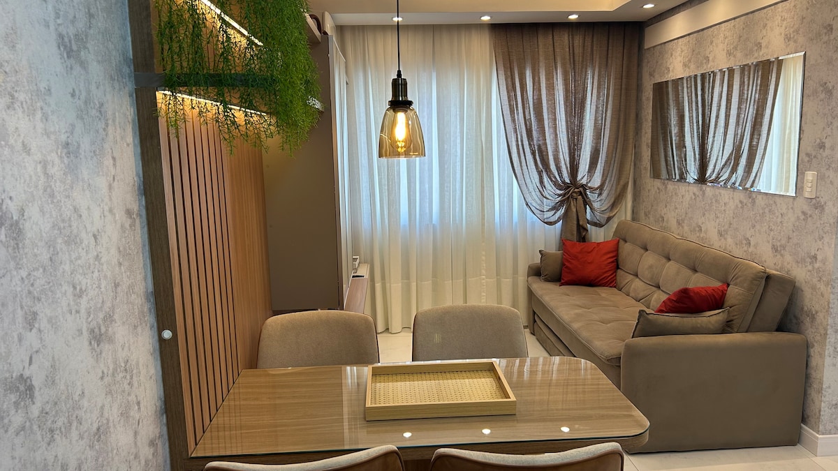 Uživajte u Balneário Camboriú u ovom novouređenom luksuznom stanu s pogledom na more u blizini restorana i pijaca. Ima dva apartmana, jedan s pogledom na more i bračnim krevetom. Soba ima TV od 75 inča i bioskop sa 65-inčnim Mini Led Ambilight TV-om i zvučnim sistemom Sonos. Svjetla, zavjese, klima-uređaj i televizori u dnevnoj sobi i bioskopu su pametni i njima se upravlja putem emisije Alexa. Potpuno opremljena kuhinja ima mašinu za pranje sudova i filter za vodu.