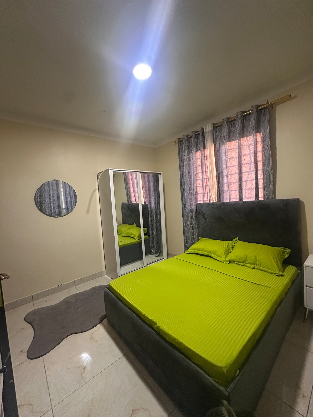 A cozy modern studio with a comfortable bed, private bathroom, small kitchen, fast Wi-Fi, and air conditioning. Perfect for solo travelers or couples looking for a quiet, convenient place to stay. Waa qol iyo fadhi oo casri ah, oo leh sariir raaxo leh, musqul gaar ah, jikada yar, Wi-Fi degdeg ah iyo mukeef. Ku habboon qof keliya ama lamaane raadinaya meel deggan oo raaxo leh