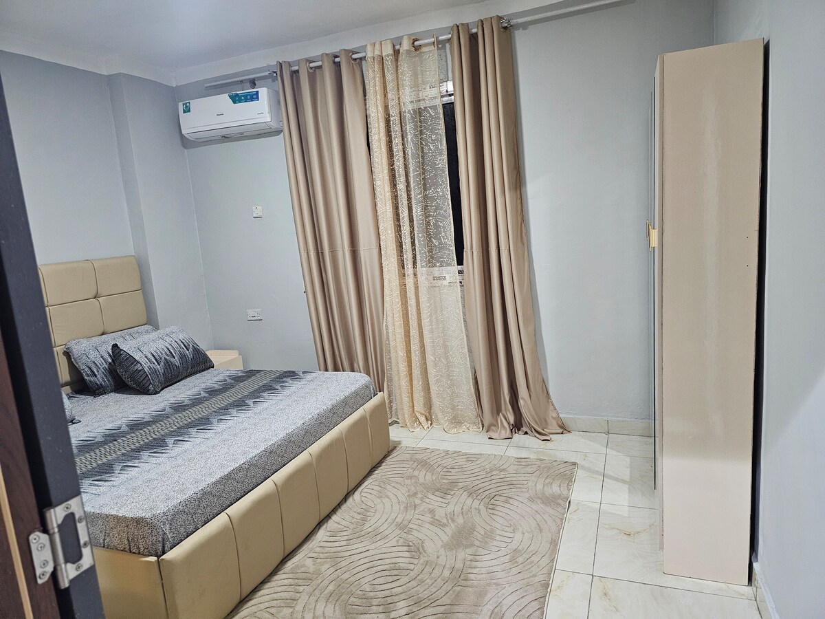Just a 4-minute walk from the beach Just a 2-minute walk from Madina Beach Resort Welcome to your peaceful beachside escape in Mogadishu☀️🌊 Enjoy the entire first floor of a private three-story villa, offering space, privacy, comfort, and refreshing ocean views. The apartment features two comfortable bedrooms, each with a queen-size bed, designed to give you a restful night's sleep after a day in the sun.