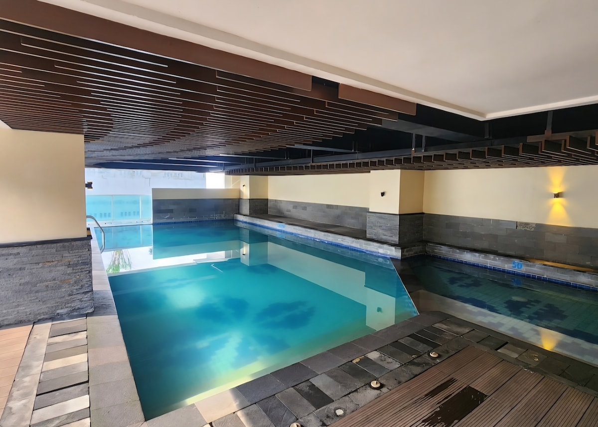 Smješten u centru grada Bandunga, naš stan je okružen sa 2 velika tržna centra, bip tržni centar i bec tržni centar, do kojih je vrlo lako doći pješke. Uživaćete u zalasku sunca u gradu Bandungu na visini 21. sprata Besplatan brzi Wi-Fi, sa 4K Smart TV-om od 55 inča, sa Premium članstvom u Netflix-u, Disney+, HBO Max, IQIYI, Viu Spavaćete na bračnom krevetu, dušeku King Koil i 2 dodatna otirača Imajte na umu da je parking - i za motocikle i za automobile - bezgotovinski