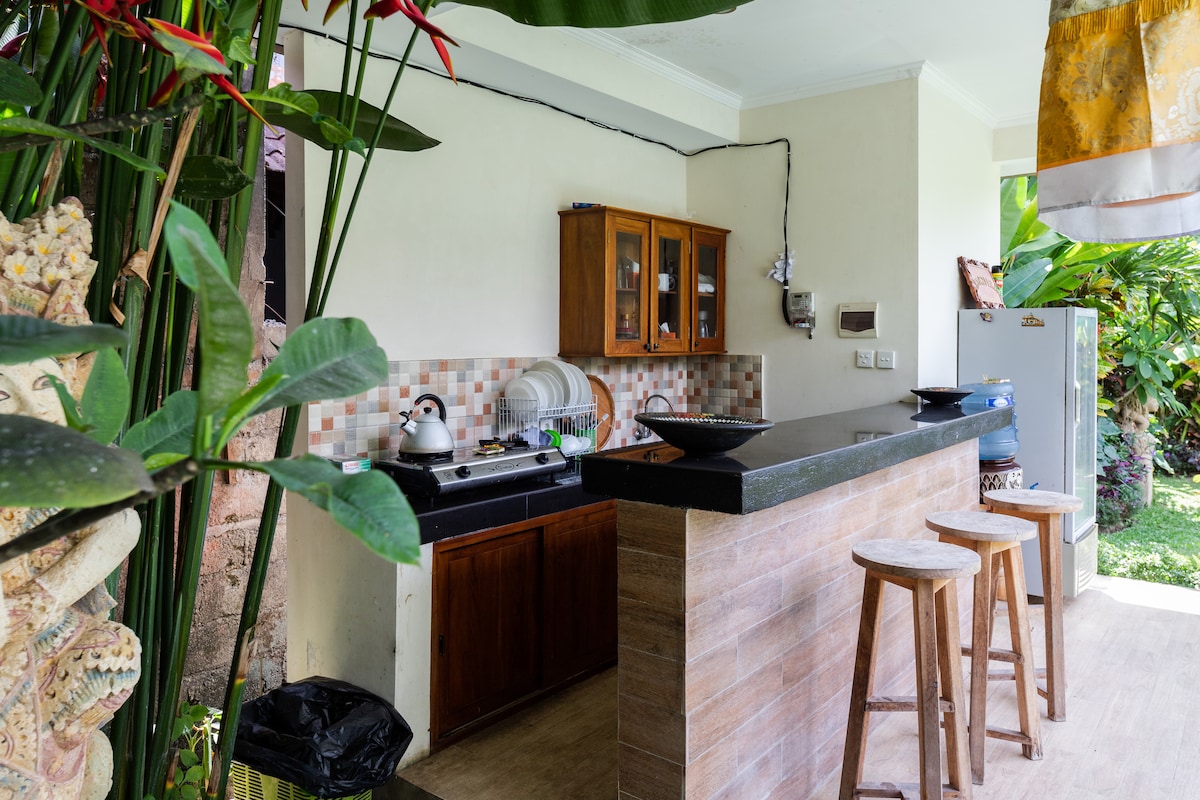 Family run villa with a private suite (private bedroom andbathroom,kitchen and pool, Garden and gorgeous sunset views) Quiet and secluded. Yet only a 2-minute walk to shops and restaurants. Just an 8-minute walk to the center of town. This gorgeous villa is your paradise in Ubud for your stay. and the hospitality of our Balinese family.