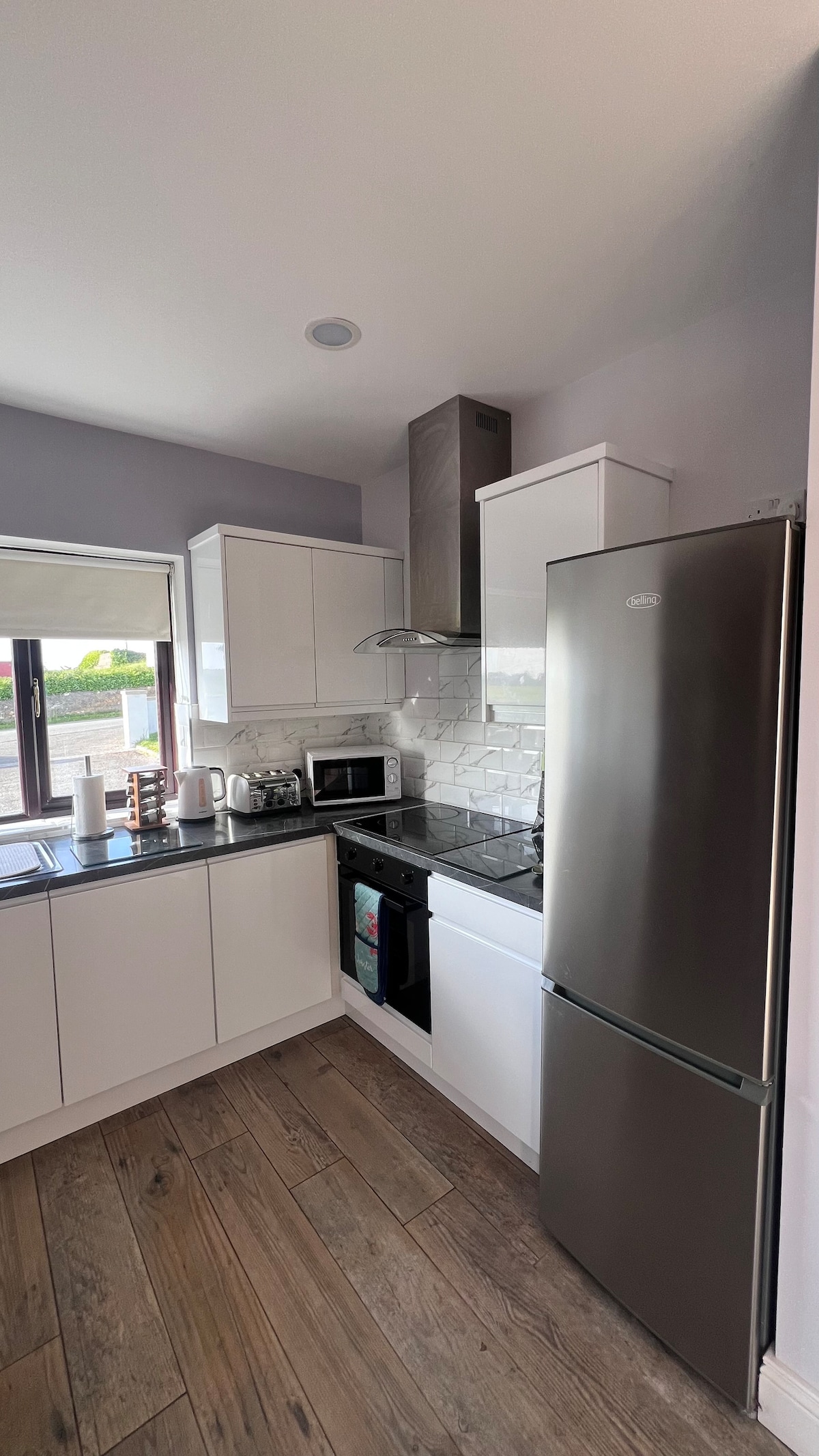 Uživajte u šarmantnom odmoru u našem udobnom studio apartmanu. Smješteni u zadnjem dijelu našeg doma, uživajte u privatnosti sa zasebnim ulazom. Studio ima udoban bračni krevet, malu čajnu kuhinju radi lakšeg snalaženja i električnu tuš-kabinu. Samo 2 km od skrovitih zlatnih plaža i kratkih 5 km vožnje do šumskog parka Glanteenassig i 5 km do sela, to je savršen spoj opuštanja i avanture. Doživite ljepotu područja Kaslgregorija i uživajte u opuštenom odmoru ili avanturističkom boravku.