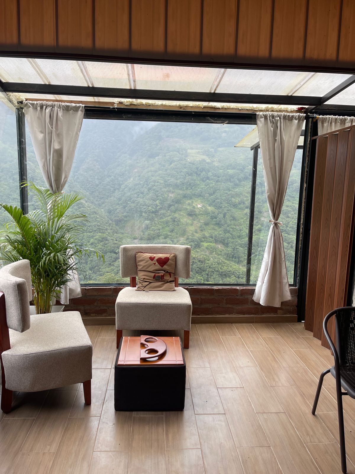 To je brvnara, udaljena 7 minuta od centra grada,puna zelenih površina i vrtova ,orhideja i raznolikosti ptica, okružena planinama i prekrasnim pogledom na sliv reke Pasta, jedinstveno za porodični odmor i opuštanje. Osim vašeg znanja, potrebno je da se popnete na 38 stepenica od betonskog i rustikalnog kamena, na kraju ćete imati nagradu za veličanstven pogled na rijeku Pastaza odozgo i novootvorenu vodenu hidromasažnu vodu.