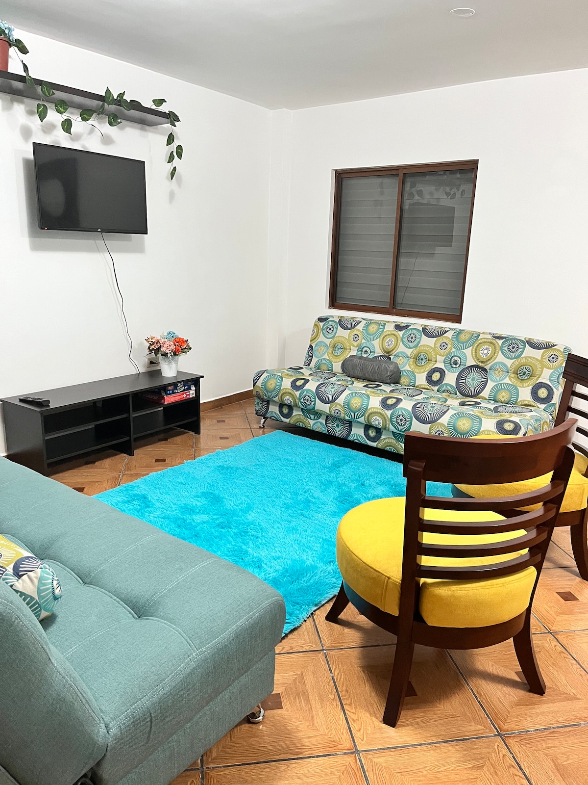 Acogedor departamento con excelente ubicación, cuenta con una pequeña sala, mesa de trabajo y cocina práctica, ideal para una estancia cómoda; . Está ubicado en el segundo piso con vista a la calle una zona muy conveniente. IMPORTANTE: al encontrarse en un entorno activo muy central y turístico, puede presentarse ruido por carros, buses o otros vehículos.