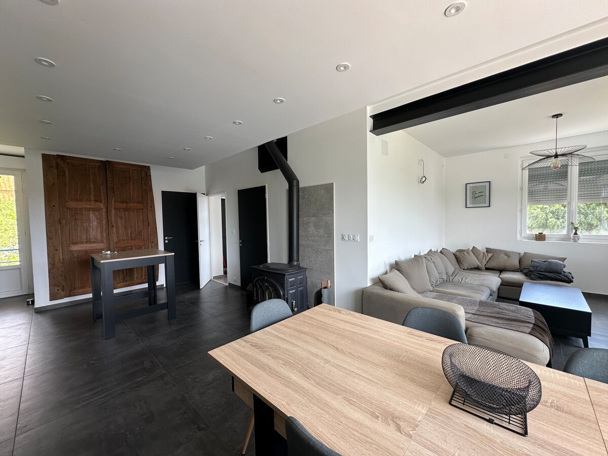 Naš smeštaj - označen sa 4 zvezdice **** - je jedinstven. Jedinstvena je jer smo je sami izgradili od A do Z sa plemenitim i prirodnim materijalima. Jedinstvena je jer je prostrana, svetla i mirna. Idealno se nalazi u mirnom dijelu lijepog sela i blizu Issoirea, lako dostupan jer nije daleko od izlaza 15 A75. Savršeno kao zaustavljanje za posetu gostima ili kao ljubavno gnezdo za posetu našem prelepom regionu.
