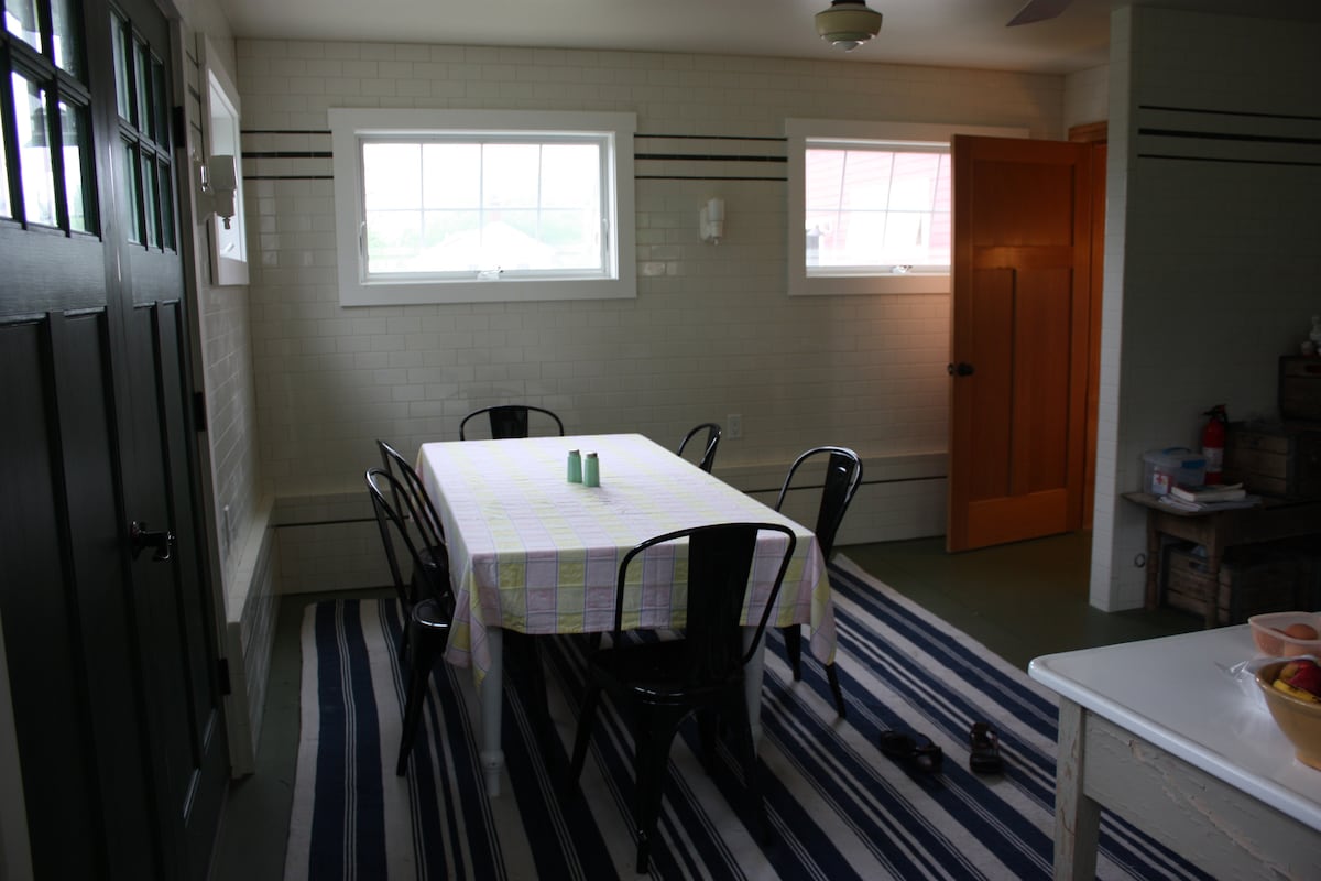 Moj dom se nalazi u malom gradu na prašnjavom putu i veoma je privatan. Obala rt 1/okean je udaljena oko 25 minuta i nudi svjetionike, jastoge i gostoprimstvo u Mejnu. Ova soba za goste ima krevet u punoj veličini koji je složen sa jastucima i antiknim prekrivačem, komodom i ormarom. Kupatilo se može pohvaliti tušem, kao i kadom za noge sa kandžama ako želite da se opustite. Postoji televizor i klima-uređaj u toplijim mesecima, kao i plafonski ventilator kao alternativa.