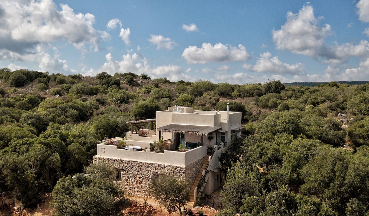 Prelijepa prostrana brvnara za goste za parove u zajednici Getea u Galileji. Sa pogledom na more i litice, omeđen čarobnim vadijem i okružen zelenom prirodom. Brvnara ima svijetao i uređen prostor. Veliki i luksuzni bračni krevet, potpuno opremljena kuhinja, jedinstvena tuš-kada i prostor za sjedenje s pogledom na wadi iz kojeg možete izaći u prirodu na planinarenje. U dvorištu se nalazi luksuzna hidromasažna kada s pogledom.✨ Ljeti možete da snizite temperaturu. 💦 Brvnara je izgrađena sa puno ljubavi, a obraćajući pažnju na male detalje kako bi se stvorilo mjesto koje bi pružilo savršeno iskustvo🤍