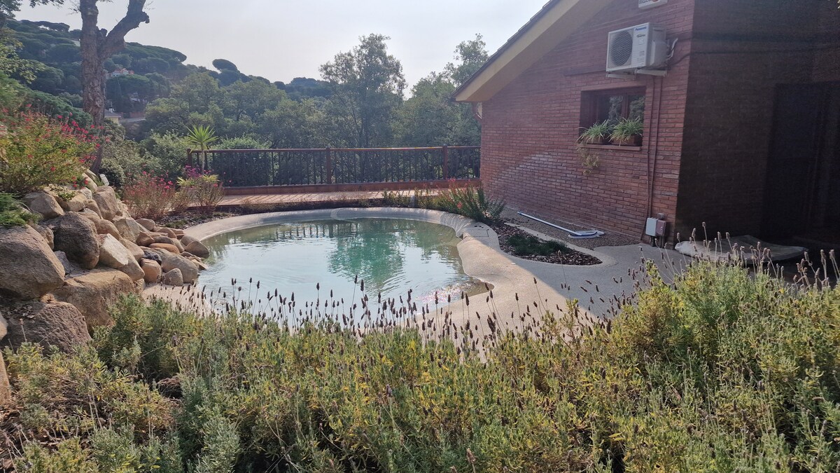 Smještaj 20 km od Barselone, 15 min od trkačke staze i 12 min od plaže. Uživajte u dnevnom boravku u stilu potkrovlja od 100 m² sa dizajnerskim kaminom i panoramskim pogledom na beskonačni bazen sa slanom vodom okružen prirodom. Ako volite prirodu, uživaćete u prelijepoj bašti i vanjskoj kuhinji sa roštiljem. Sant Verd je mirno utočište idealno za porodice. Zabave ili događaji su strogo zabranjeni.