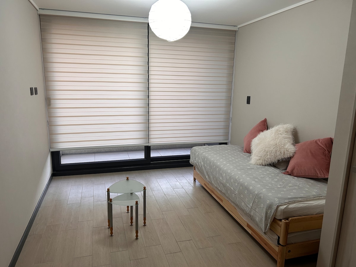 Udoban, Linda Vista, Parking, odličan javni prevoz do ulaza u kondominijum koji dolazi i odlazi iz centra Valparaisa i Viña del Mar, 10 minuta od autobuskog terminala Valparaiso. Za vaš odmor, da upoznate grad ili da se odmorite, opremljeni, samo za 2 osobe. A mi, Mariangelina i Francisko, uvek rado želimo da vam poželimo dobrodošlicu i odgovorimo na sve vaše upite. Oni će biti dobrodošli. Radujemo se vašem dolasku. 100% prave fotografije
