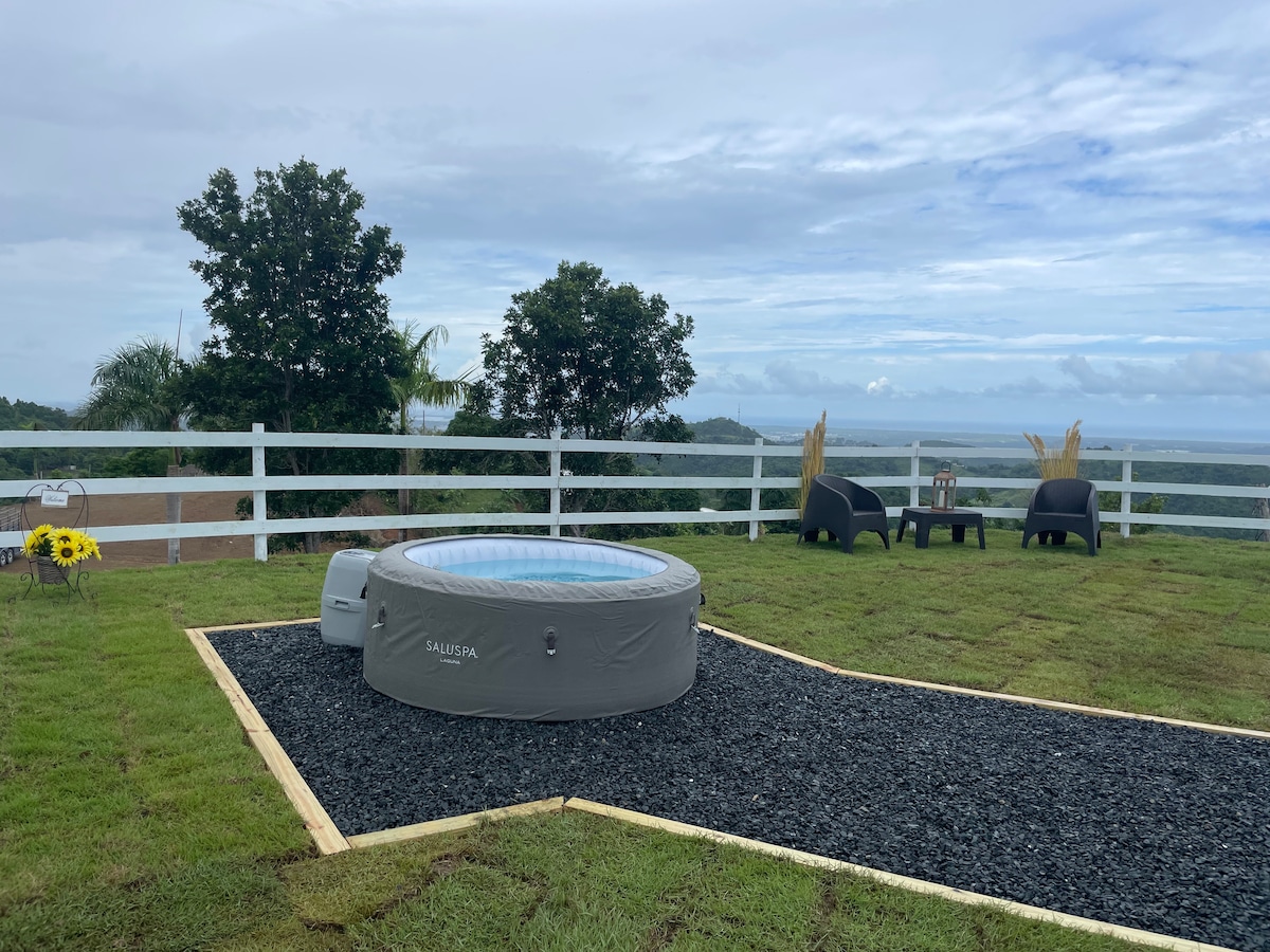 Ovo šarmantno utočište nudi pogled na planine, grad i okean koji oduzima dah. Potpuno opremljena kuhinja i udobni bračni kreveti, savršeno je mjesto za opuštanje i punjenje u prirodi, samo 38 minuta od aerodroma Sju. Opustite se pored bazena🔥, ognjišta ili viseće ležaljke ili istražite obližnje atrakcije kao što su spuštanje sajlom, jezera i jahanje konja. Lokalna kuhinja i ekskluzivne preporuke turističkih vodiča nude autentičan doživljaj. Dovoljno blizu starog San Huana i plaža za jednodnevne izlete!