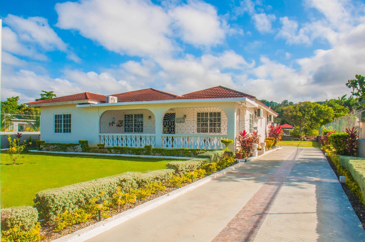 Opustite se u ovoj mirnoj, luksuznoj i elegantnoj kući, vrlo udobnom i modernom namještaju, pogledima na planine i okean, čistom i prijateljskom okruženju, vrlo mirnoj zajednici sa hladnom vjetrovitom atmosferom , nikada dosadan trenutak u ovoj kući. U brdima Rosehall, Community call Edmund Ridge Estate, s pogledom na plažu Rosehall, ovaj objekat je udaljen 5 minuta od besplatne plaže, 10 minuta od Međunarodnog aerodroma Sangster, 5 minuta od tržnog centra, 15 minuta od Hip trake.