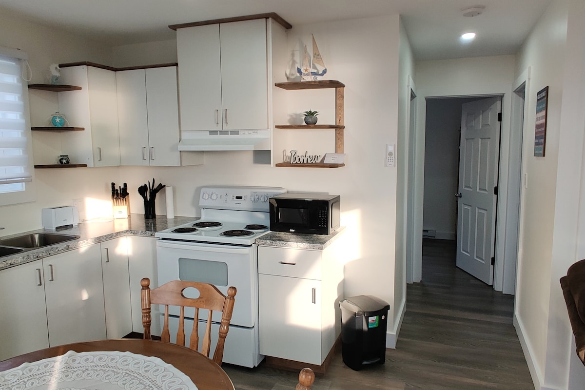 Topla kuća u Gaspésieju koja se nalazi na visoravni iznad zaliva. Prekrasan panoramski pogled. Velika parcela s pogledom na brda. Kuća se nalazi na pet minuta vožnje od centra grada, gde možete pronaći prodavnice namirnica, banke , apoteke, SAQ... Sve je spremno Route du Parc de la Gaspésie. More nije dostupno iz objekta, ali je udaljeno nekoliko minuta hoda. TV,Wi-Fi,DVD, knjige i igre. Novo: Stanica za punjenje električnih automobila.