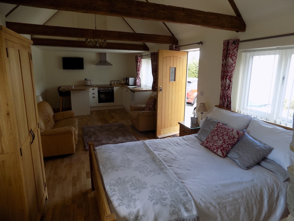 Veliki moderni aneks koji se nalazi u području Mendip Hills Outstanding Natural Beauty. Fantastičan pogled sprijeda i straga prema brdima i preko nivoa Somerset. Odlična baza za istraživanje kanjona Čedar, Vuki Hola, Velsa, Priddija i još mnogo toga sa pješačkim stazama koje počinju od kuće. Idealan studio za miran rad, parove na odmoru i mlade porodice. Veliko kupatilo, balkoni, studio čajna kuhinja, bračni krevet i jedan dodatni kauč na razvlačenje. Parking . Kontinentalni doručak je uključen.