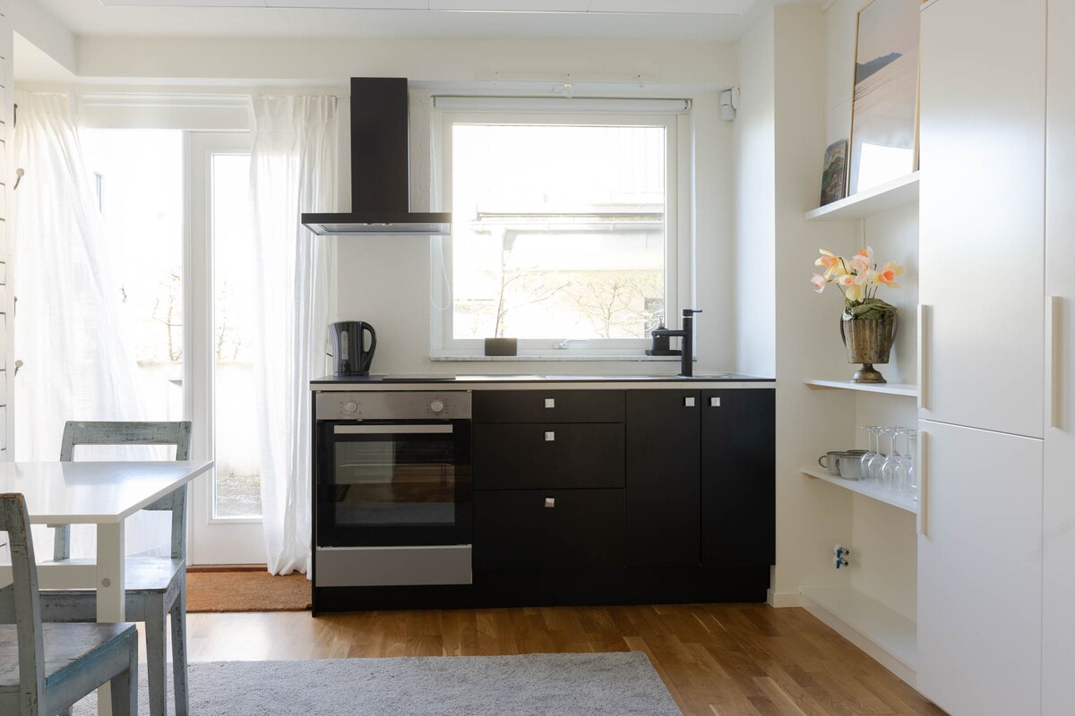 Samostalna gostinjska kuća sa terasom, baštenskim nameštajem i roštiljem. Ukupna površina smeštaja je oko 50 kvm. Dnevni boravak, kuhinja i spavaći prostor za 2 osobe su u jednoj prostoriji. U kuhinjskom delu se nalazi šporet sa rernom, frižider/zamrzivač, aparat za kafu. Toalet sa tušem i veš mašinom. Kuća za goste nalazi se u dvorištu vile u prirodno lepom području u blizini centra i mora. U neposrednoj blizini nalaze se brojne pešačke i biciklističke staze. Mnogo lepih mesta za istraživanje. Lotta & Lars-Åke vas srdačno dočekuju.