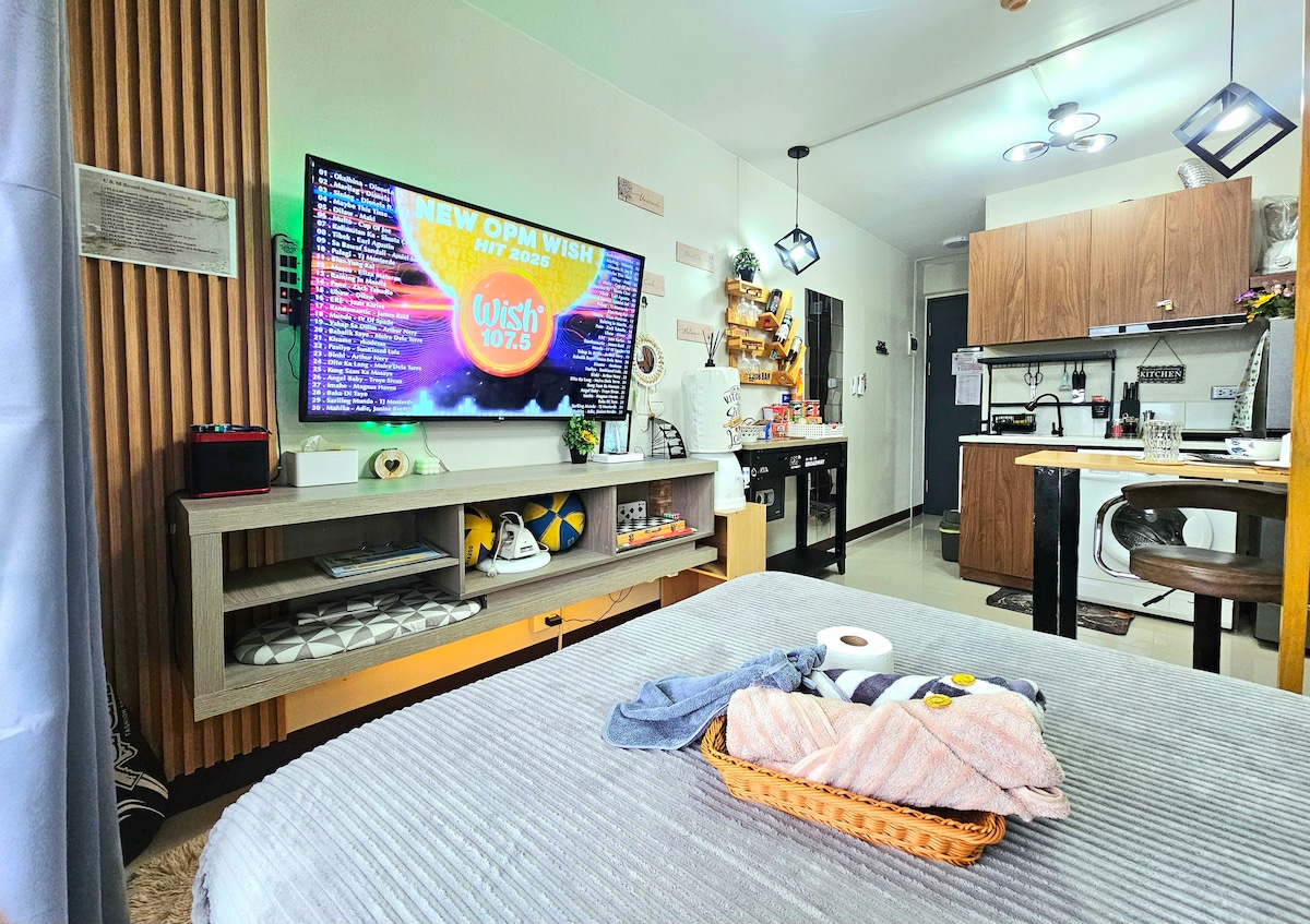 Neutralne nijanse i meke završne obrade daju miran, moderan ugođaj ovom studiju površine 37 m² u kompleksu Tambuli Seaside Living. Sa dva velika bračna kreveta, udobnom sofom na razvlačenje, brzom Wi-Fi mrežom i potpuno opremljenom kuhinjom, osmišljen je da pruži i udobnost i praktičnost. Privatni balkon pruža panoramski pogled na kanal Hilutungan, a besplatan pristup ekskluzivnim bazenima stambene zgrade upotpunjuje ovaj odmor u stilu odmarališta – svega nekoliko minuta od aerodroma Maktan.