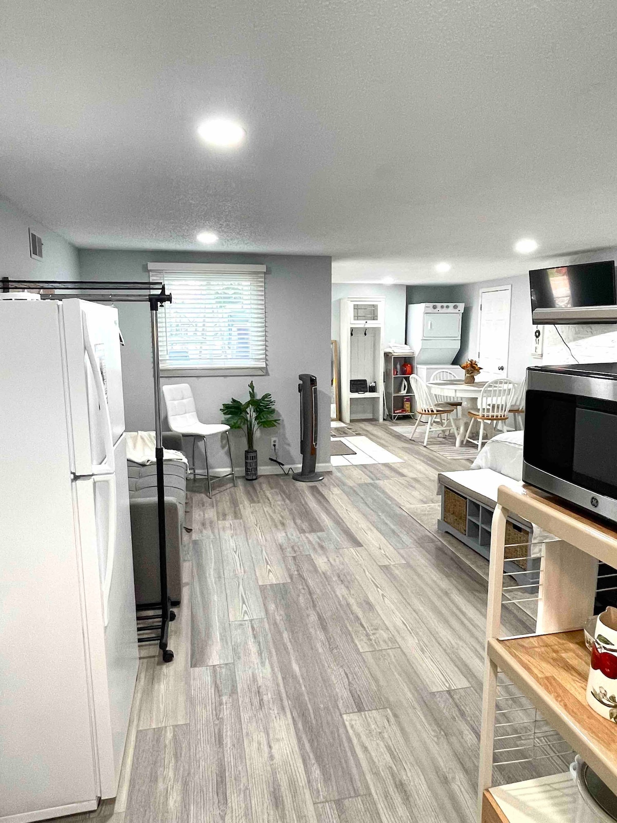 ✨ Udobno utočište u Barndominijumu ✨ Pobjegnite u naš šarmantni barndominijum na mirnoj površini! Uživajte u bračnom krevetu, kauču za spavanje, Starlink Wi-Fi-ju, radnom stolu za rad na daljinu i unutrašnjem dvorištu sa opuštajućim pogledom na farmu. Nalazi se na našoj farmi koja radi, a naš dom je udaljen oko 60 metara. Prostor je privatan i samo je vaš, spajajući modernu udobnost sa šarmom sela - samo nekoliko minuta od grada!