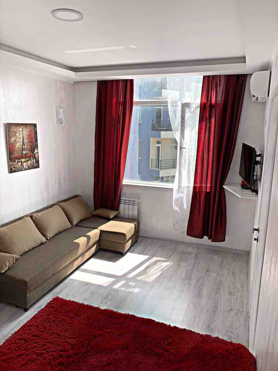Svijetli i uredni jednosobni stan sa sopstvenim balkonom i pogledom na zeleni park i aveniju. Nalazi se u centralnoj ulici.,na spoju starog i novog grada:) U blizini se nalazi zeleni park sa atrakcijama , delfinarijum, bulevar, plaža,mnoge prodavnice i kafići. Vrlo dobra lokacija.