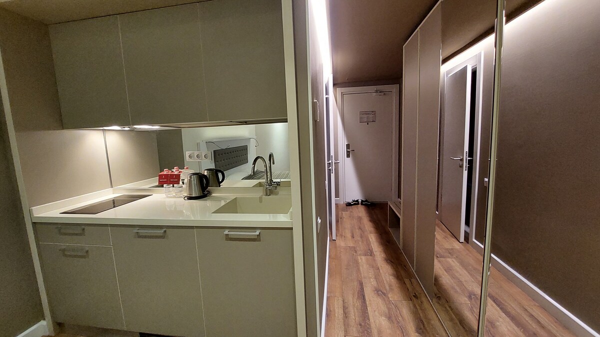 Elegantan, klimatizovan, potpuno opremljen, 1 spavaća soba, 1 kupatilo i dnevni boravak sa otvorenim kuhinjskim stanom na 21. spratu, 5 minuta hoda do mora, koji se nalazi u hotelskom kompleksu New Wave. Stan je moderno namješten, savršen za parove, prijatelje, porodice ili daleke radnike i poslovne putnike. U zgradi su dostupni dodatni sadržaji koji se dodatno naplaćuju, kao što su bazen, teretana i restoran.