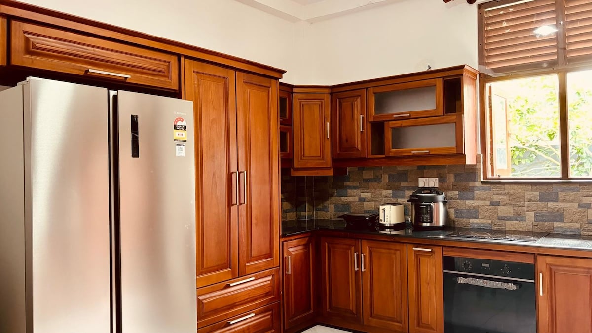 Doživite luksuz u stilu butik smještaja u ovom prelijepom arhitektonski uređenom domu koji se nalazi na samo 15 minuta od aerodroma. Uživajte u dve elegantne dvokrevetne spavaće sobe, elegantnom dnevnom boravku sa modernim udobnim prostorom za sedenje, trpezariji, kuhinji, modernom kupatilu i mirnoj bašti. U mirnom području, a samo 5 minuta od grada Negombo, plaže, restorana i šopinga. Ova prostrana jedinica sa Wi-Fi mrežom i klima-uređajem idealna je za parove, prijatelje, porodice ili samostalne putnike koji traže udobnost, privatnost, praktičnost i zaista opuštajući boravak.