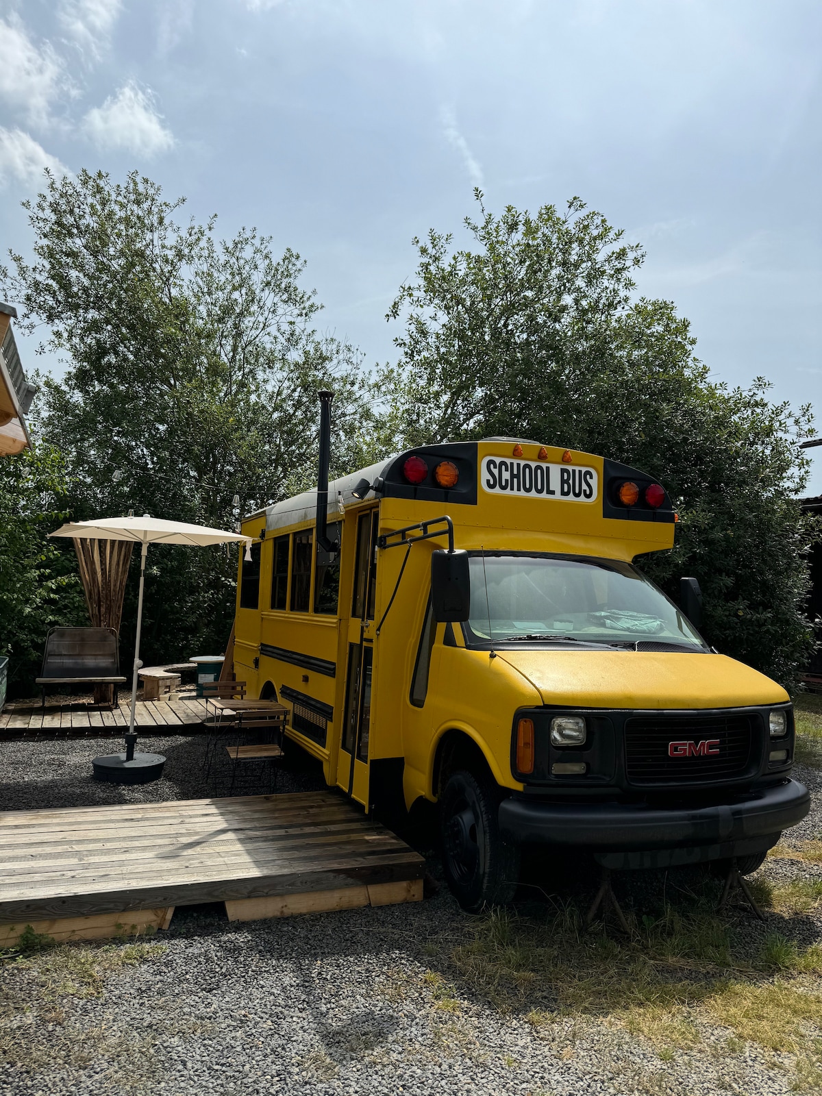 Dobro došli u naš jedinstveni njujorški školski autobus! Prvobitno smo se vozili ulicama Njujorka, potpuno smo ga preuredili i renovirali sa puno ljubavi i posvećenosti. Bašta nudi sve za savršen boravak: udobnu američku kadu, roštilj, udobnu garnituru za sjedenje, seosku kućicu za pranje veša na otvorenom sa tušem i suvim WC šoljom i romantičnu logorsku vatru. Svaki kutak priča našu priču.