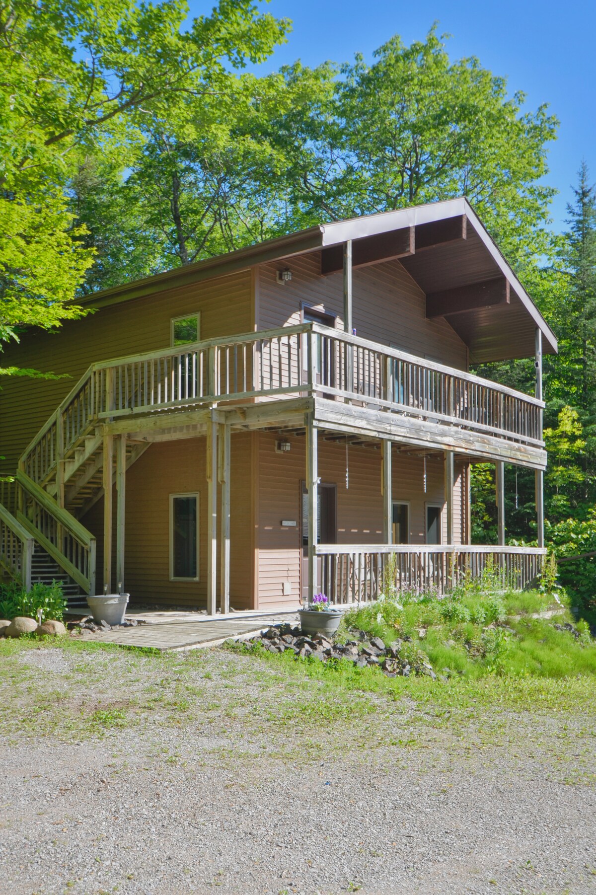 Opustite se u ovom mirnom i elegantnom prostoru. Ova potpuno renovirana kuća sa 3 spavaće sobe je savršeno mjesto za odmor. Letnje vreme, ovo je najbolje mesto za ispijanje kafe na terasi ili pristanište sa pogledom na jezero, uživanje u lomači na terasi, dovodite brod da pecate jezero ili koristite dva besplatna kajaka da uživate u jezeru. Seoska kuća se nalazi na nekoliko kilometara od reke Brul, a mnoga mesta za venčanja su blizu. 55 minuta od Dulutha, 57 minuta od Bejfilda i 35 minuta do Ešlanda za više.