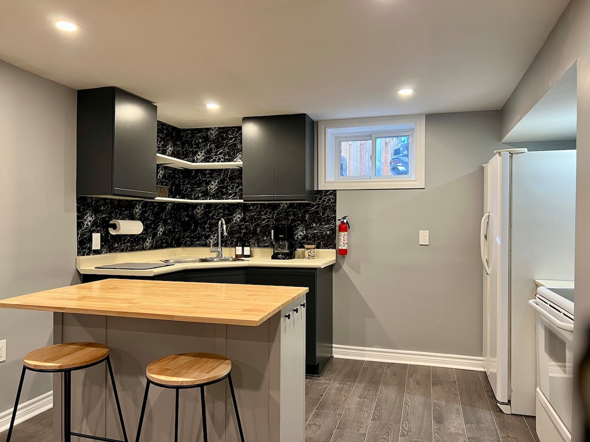 Dobro došli u svoj dom daleko od kuće! Ovaj prostor je dobro osvetljen, novouređen, moderan privatni podrumski apartman sa bračnim krevetom, čajnom kuhinjom, dnevnim boravkom i kupatilom od 4 komada. Uživajte u privatnom ulazu bez ključa. Nalazimo se u centru grada, nedaleko od 403 u četvrti Kirkendall, nekoliko minuta od moderne ulice Locke i u blizini centra grada, Mekmastera, Prvog centra u Ontariju i mnogih drugih mesta. Do kafića, restorana, nezavisnih prodavnica, staza i još mnogo toga možete doći peške.