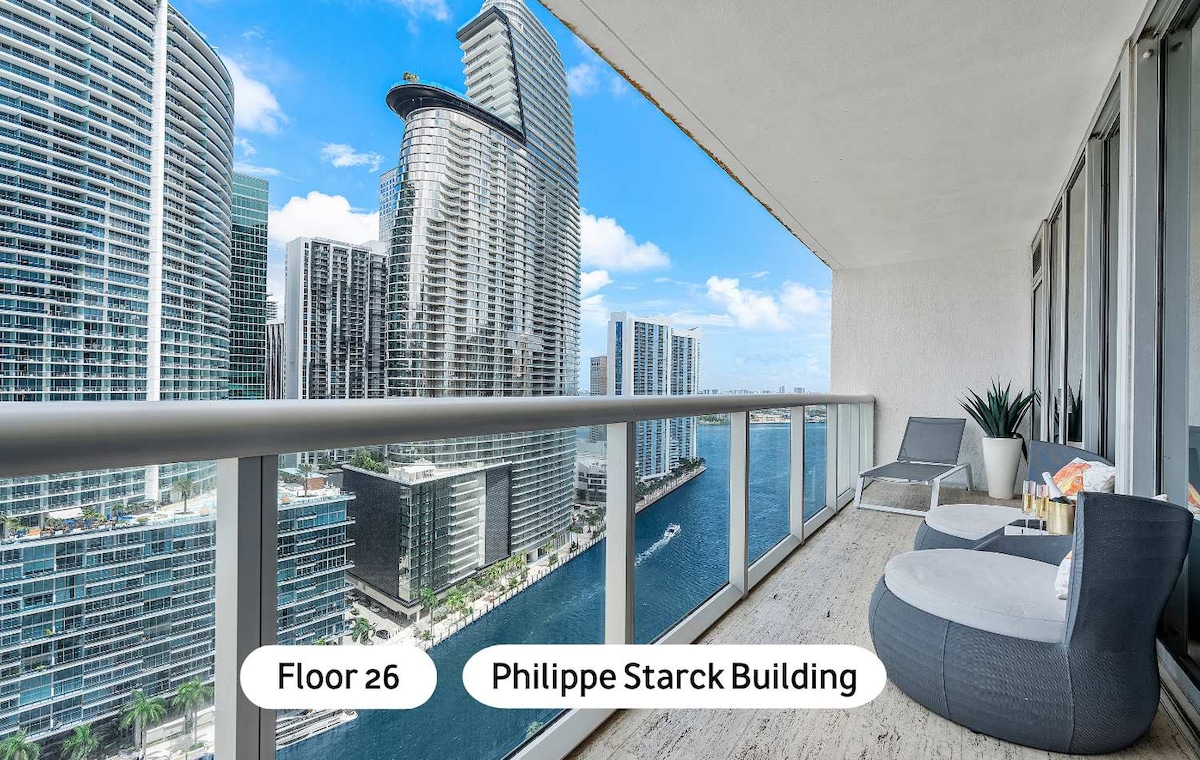 Studio na 29. spratu u Brikelu sa neometanim pogledom na grad. Preko puta pijace u zalivu, dva bloka od centra Kaseja, dom Majami Vrin i svih glavnih koncerata. Muzej nauke i akvarijum udaljeni su 6 blokova. Restorani kao što su Seksi riba, Komodo, Gekko i E11even su udaljeni manje od 5 minuta. Brikelova najnovija dvorana za hranu, Džulija i Henri, udaljena je samo 3 minuta hoda. Vinvud, Dizajnerski okrug, Saut Bič i međunarodni aerodrom Majami udaljeni su manje od 10 minuta.