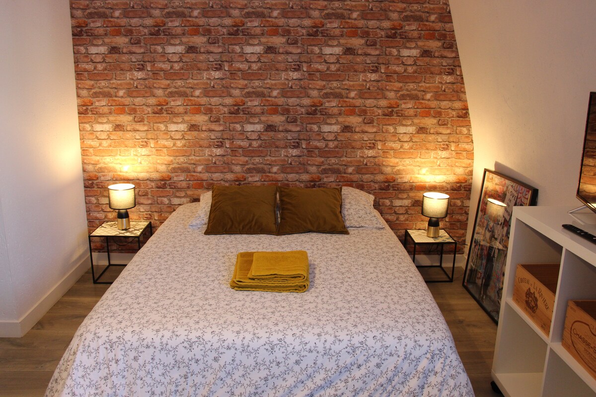 L'Escale je luksuzni studio apartman koji se nalazi na trgu Place de la Visitation u Anžeru, 2 minuta od željezničke stanice i centra grada. Potpuno renoviran u tropskom šik stilu, nudi veliki bračni krevet, opremljenu kuhinju, moderno kupatilo i ugodnu atmosferu. Idealno za poslovne boravke, gradske odmore ili putovanje za parove. Vrhunska lokacija, tiho i svijetlo, spremno da vas dočeka. Zašto izabrati L'Escale ✔️ Tih studio apartman ✔️Jedinstvena dekoracija ✔️ Centralna i praktična lokacija ✔️Smještaj je spreman da vas dočeka