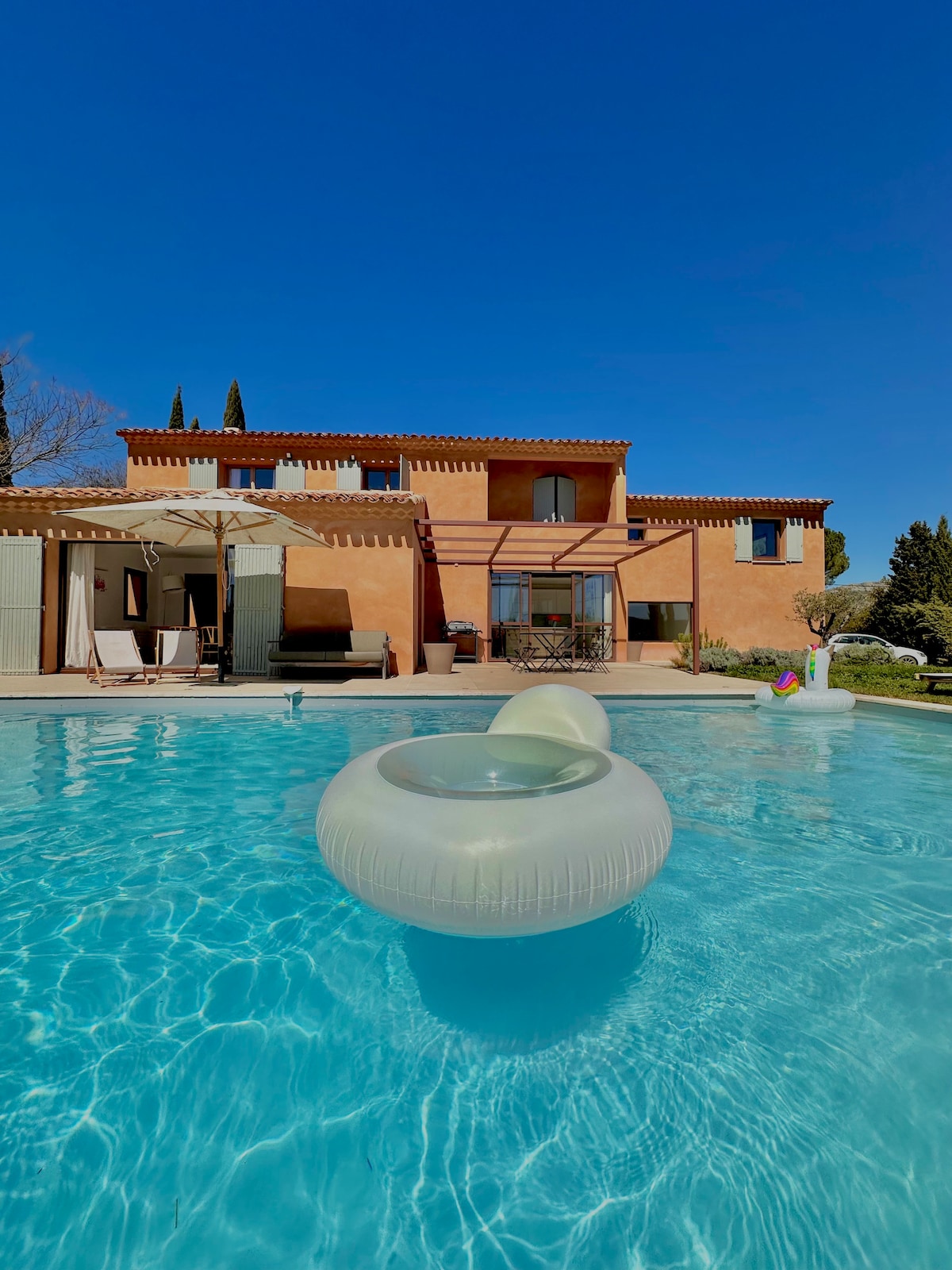 Renovirana tradicionalna SEOSKA KUĆA od 220 m2 koja se nalazi u podnožju Sent Viktoara , draga Sezanu , okrenuta prema jugu sa bazenom u sredini polja. Lista želja je zagarantovana i apsolutno mirna, pogled koji oduzima dah na okolna brda Otvorena kuhinja je izuzetno opremljena (rotirajuća rerna, indukciona ploča za kuvanje, mikrotalasna rerna, aparat za kafu na otvorenom). Ova velika kuća je idealna za grupu prijatelja , ali nije pogodna za zabave i malu djecu.