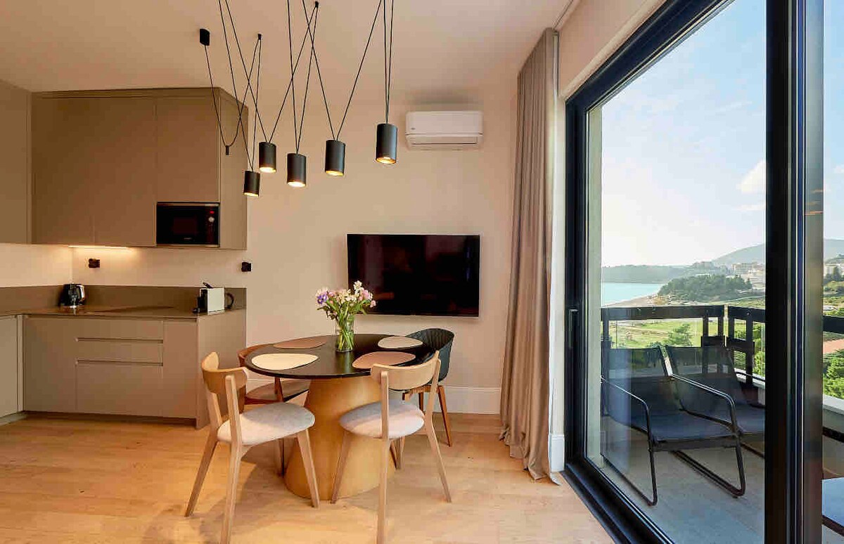Welcome to Quercus Residence, a spacious 58-square-meter one-bedroom apartment in the serene village of Tudorovići, offering stunning views of Sveti Stefan and the Budva Riviera. Enjoy the panoramic Adriatic Sea views from your private terrace, making this apartment an ideal escape for couples or small families. We have 4 apartments of the same kind in our villa.