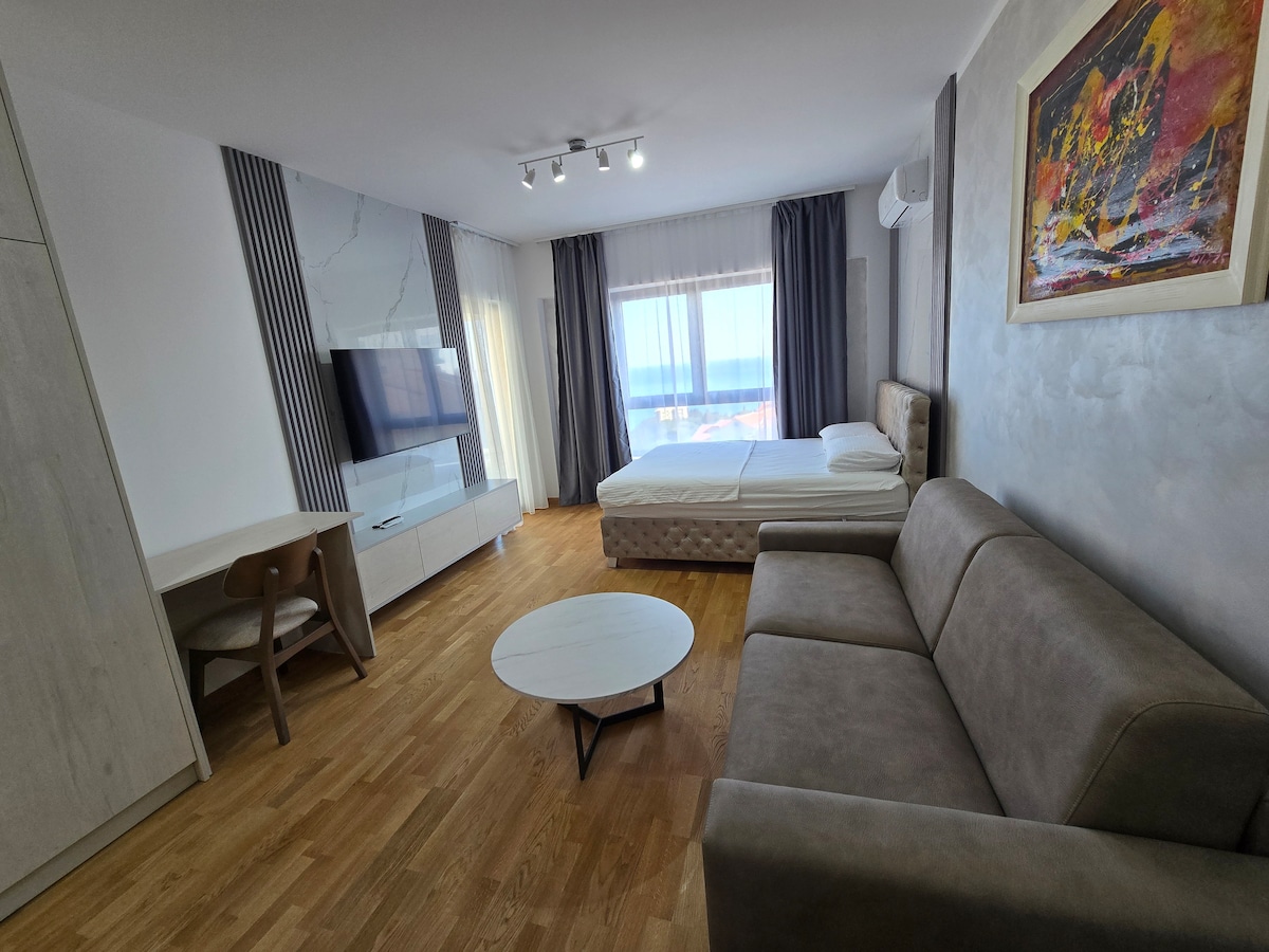 Apartmani se nalaze u hotelu Ponta Nova, imaju poseban ulaz i poseban lift!Prekrasan pogled sa terase!! Supermarket, veliki izbor kafića i restorana su na pešačkoj udaljenosti. Odlične i udobne plaže za svaki izbor, najbolje Kamenovo i Sveti Stefan! Ako ste raspoloženi za divan odmor na plaži, ukusnu hranu i veličanstvene poglede, onda ste na pravom mestu🤗