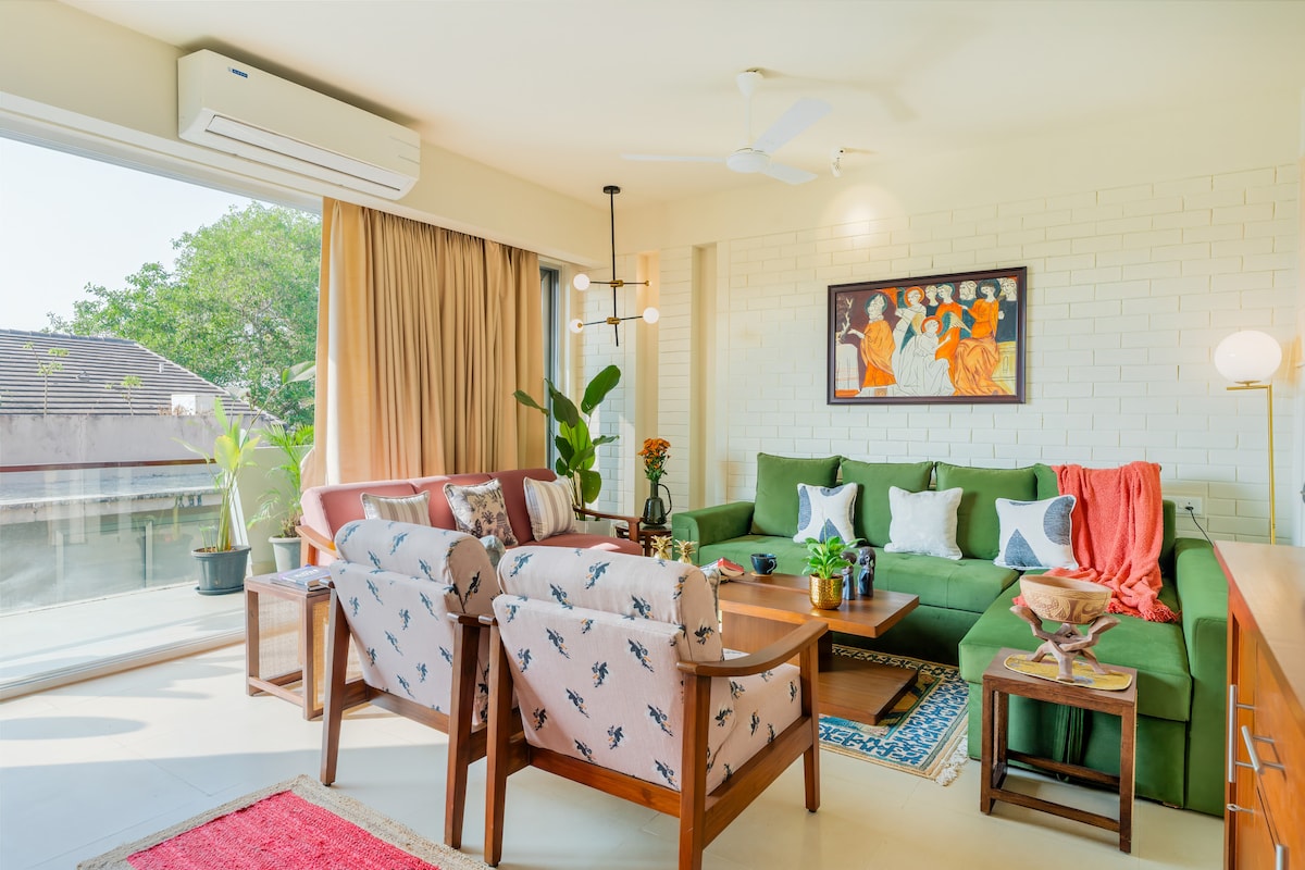 Dizajnerski 1BHK stan| Šetnja plažom od 5 minuta |Hispeed Wi-Fi|bazen