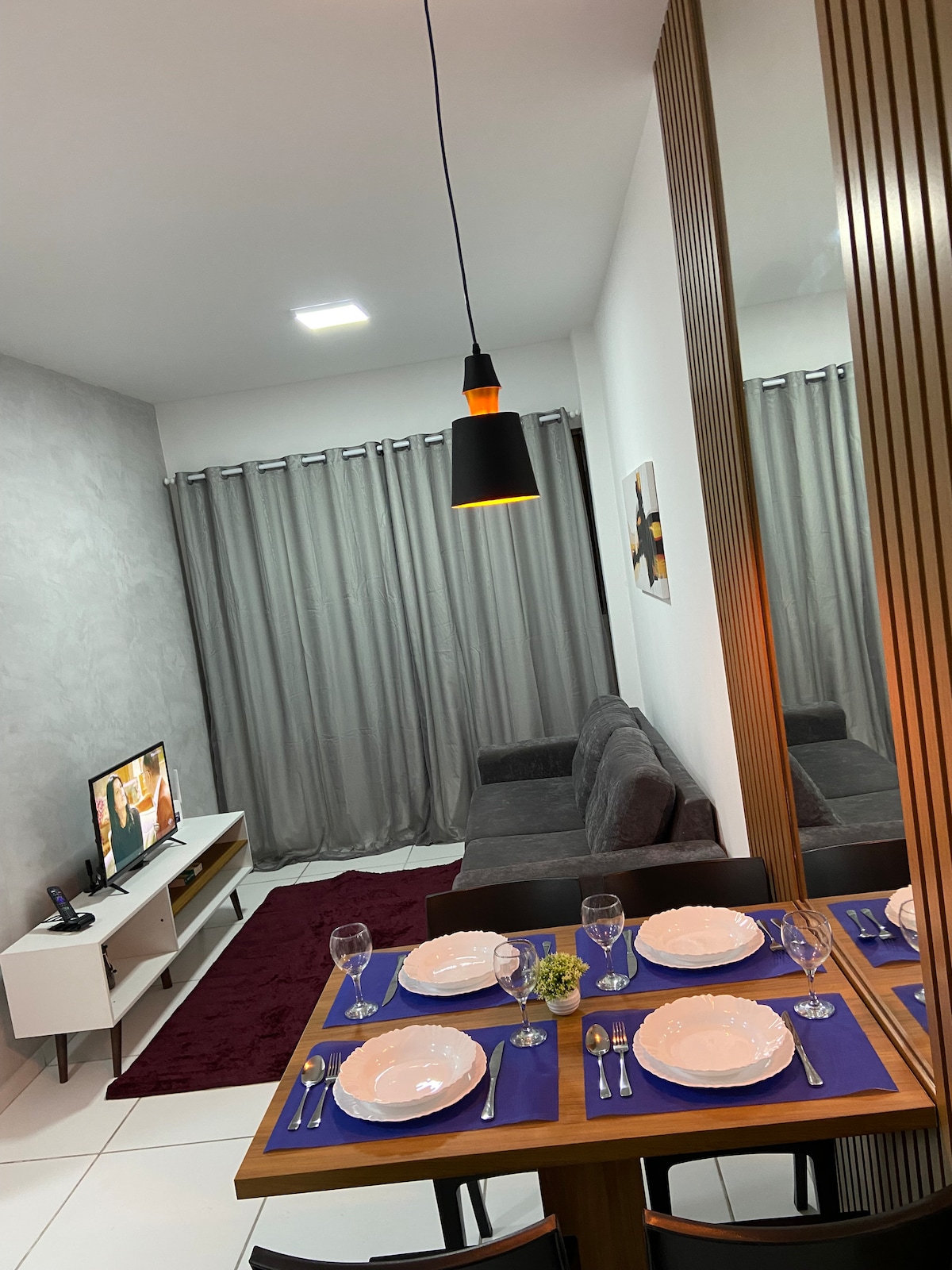 Novi stan 300 metara od Caruaru Shoppinga i Senaca, sa neverovatnim pogledom na grad. Ima udoban bračni krevet, Smart TV sa pristupom kanalima i Netflix. Imamo besplatan Wi-Fi i besplatan parking. Stan je potpuno namješten (klima-uređaj, pegla, sto, kauč na razvlačenje, mikrotalasna rerna, frižider, ploča za kuvanje, gelagua, posuđe, pribor za jelo, čaše, blender, topli tuš, aparat za kafu itd.). Naša zgrada ima fitnes centar, bazen, sobu za zabavu, lift i elektronsku recepciju.