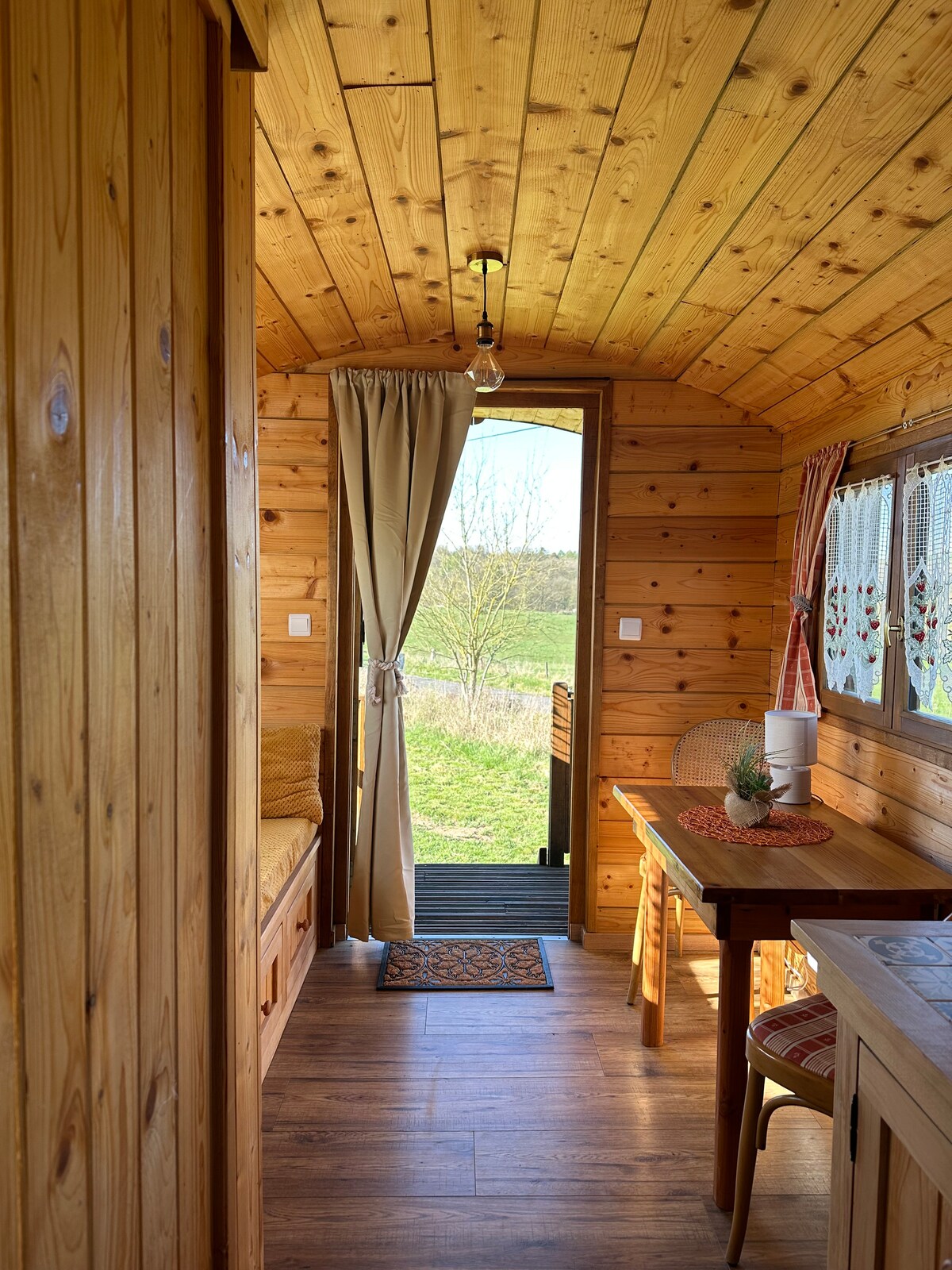 opušteno u zelenom mirnom području na našoj farmi koje se nalazi na pešačkoj udaljenosti od sela Hotton, na korak od Durbuya i La Roša. Sa nama možete da ostanete preko noći u samoizgrađenom Pipo vagonu opremljenom svim udobnostima. Uveče se možete opustiti nakon čvrste šetnje ili vožnje biciklom u hidromasažnoj kadi na drva ili uživati u roštilju. Obezbijedili smo sve, od posteljine do uglja, tako da možete uživati u bezbrižnom boravku. mvg Toni i Elen
