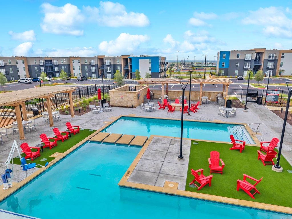 Relax in this stylish 1BR apt perfect for professionals and travelers. Comfortably sleeps 2 and features resort-style amenities in a prime Central Texas location. Minutes from I-35, Dell Diamond, Kalahari Waterpark, and near Georgetown, Round Rock & Austin. Close to St. George’s, Baylor Scott & White, Ascension Hospitals & Fort Cavazos. **FREE Amenities** • Wi-Fi • Parking • Coffee • Netflix, Apple TV & Peacock • EV Charging (Tesla NACS) • Pool & Gym • 24/7 Access