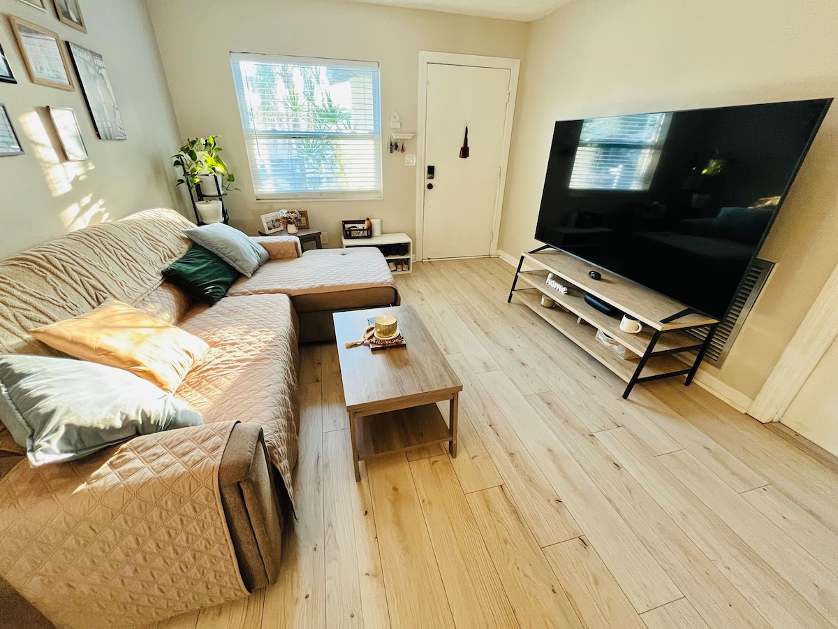 Svetlo, elegantno i neobično. Nedavno renoviran i namješten kako biste se osjećali kao da ste u svom domu na plaži. Uzmite obezbeđenu stolicu za plažu i peškir za kratak obilazak plaže(udaljen fudbalski teren) i duboko udahnite; neka vas beskrajni pogledi, talasi koji padaju i pesak između prstiju odvedu vas. Dobro opremljena kuhinja može da se koristi za jednostavno pravljenje kafe ili punu večeru. Nije ti do kuvanja? Nema problema! Indian Rocks Beach nudi lokalna mesta za kafu, ručak i večeru!