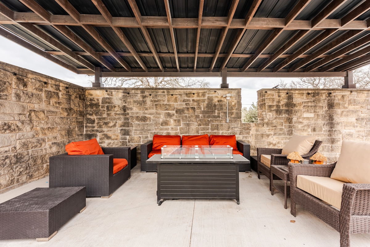 Mirno utočište od 5 hektara udaljeno samo 20 minuta od Bejlora, Magnolije i centra Vejka. Opustite se u hidromasažnoj kadi, plivajte u bazenu, uživajte u vodopadnoj pećini ili se okupite oko ognjišta. Potpuno opremljena kuhinja, bar sa kafom, igraonica, pametni televizori, vanjski prostor za sjedenje i roštilj. Za velike grupe: 1 veliki bračni krevet u glavnoj spavaćoj sobi, 2 sobe sa francuskim krevetom (2 privatna kupatila, jedno sa pristupom bazenu), soba sa krevetima na sprat (dvokrevetna + trokrevetna) i dvokrevetna soba sa radnim stolom. Zavjese za zamračivanje i aparati za zvuk u svakoj spavaćoj sobi.