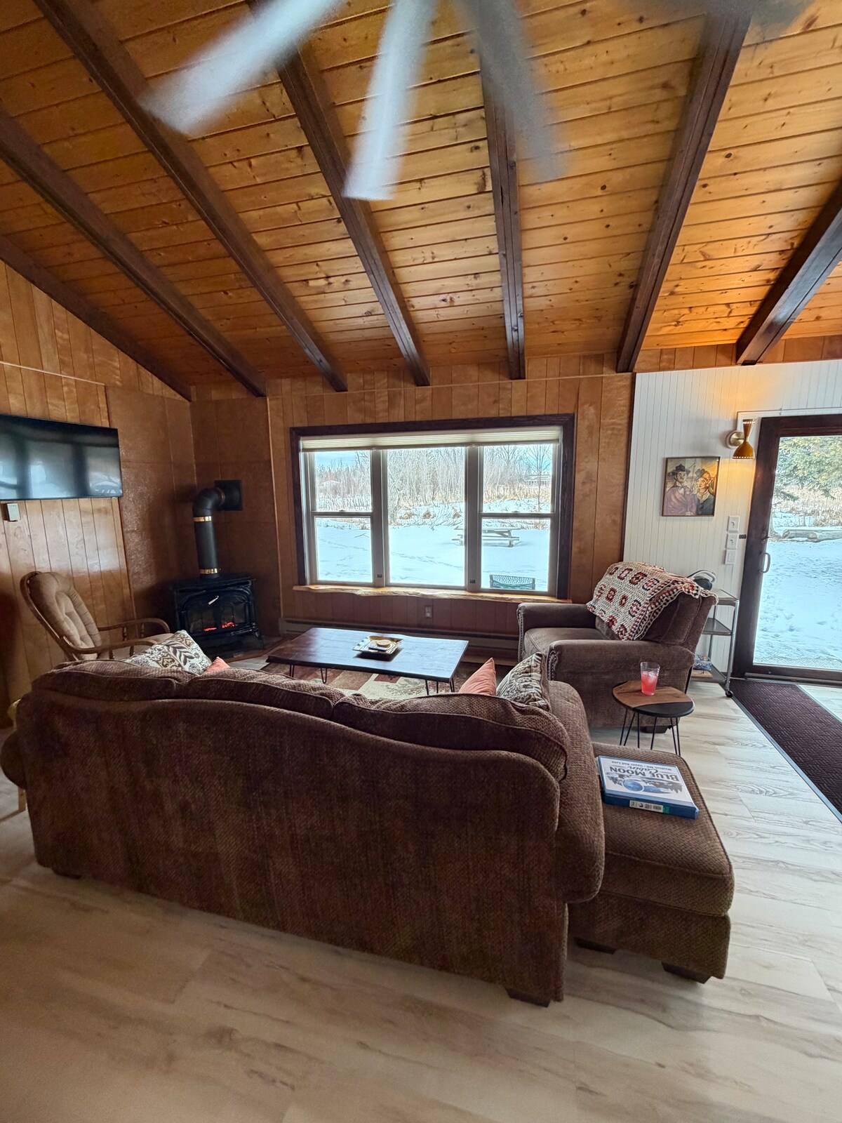 Potpuna privatnost, ova slikovita brvnara je 1,3 milje nazad u šumu koja se nalazi na 40 hektara šume sa malim jezerom i puno divljih životinja. U raju za ljubitelje orlova nalaze se tri gnijezda orla u krugu od kilometar i po od kolibe. Uživajte u brojnim pješačkim stazama na imanju. Ovo je takođe raj za motorne sanke, staza je udaljena manje od jedne milje i povezana je sa glavnim stazama za beskrajnu vožnju. Ribolov u ovoj oblasti je najbolji u državi sa mnogo jezera u blizini.