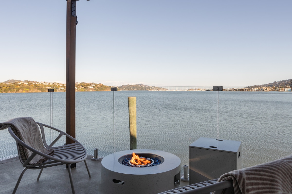Romantični plutajući kondominijum sa pogledom na vodu koji oduzima dah. Opustite se i uživajte u mirnom odmoru sa stilom i udobnošću. Uhvatite izlazak sunca iz svog super komfornog kreveta ili se izležavajte na terasi sa povremenim pelikanima (ili čak hidroplanom) koji dolaze i odlaze. Jedinstven i savršen za odmor, rad ili odmor. Most Golden gejt je udaljen 6 minuta. Aerodromski autobus staje jedan blok dalje. Pješačka/biciklistička staza do Sausalito i Mill Valley. Trajekt/autobus za San Francisko. Besplatan parking Pročitajte recenzije ovog ili još 3 plutajuća kondominija!
