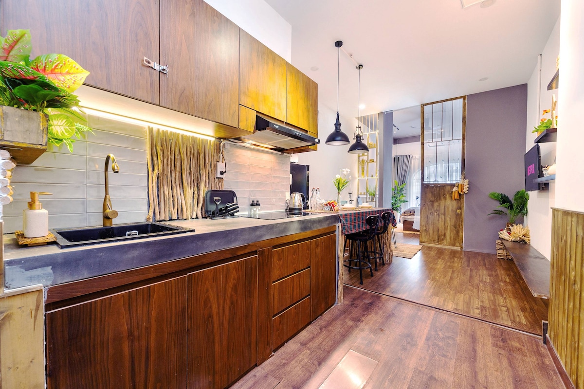Modern-rustic D1 Apartment w/ Balcony & Elevator – Walk to Ben Thanh Market Stay in the heart of Saigon! Just a 5-minute walk to Ben Thanh Market and Bui Vien Walking Street, 10 minutes to Bach Dang Wharf Park. Surrounded by local cafés, street food, and shops. Relax in comfort with: ⭐ Elevator access ⭐ High-speed Wi-Fi & Netflix ⭐ Washing machine ⭐ Complimentary shampoo & body wash ⭐ Extra towels on request ⭐ Hot water for a relaxing bath
