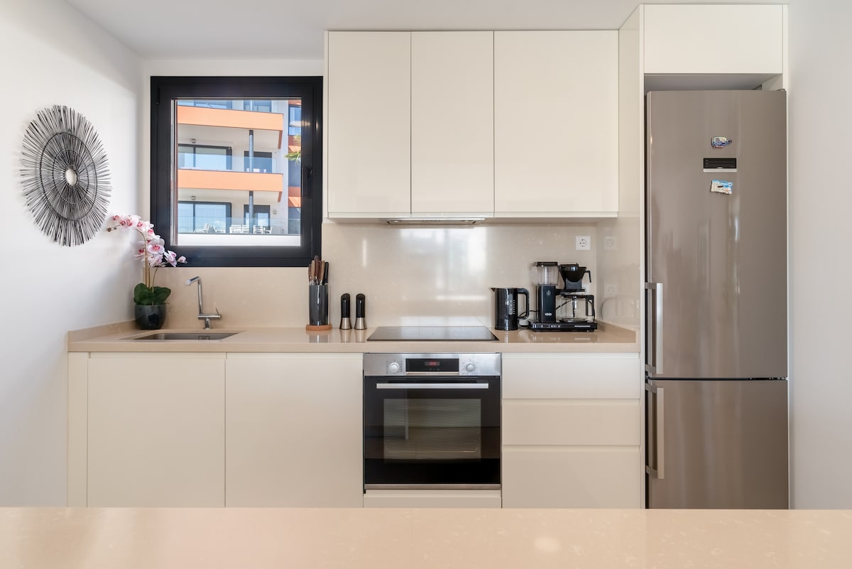 Uživajte u veličanstvenom mediteranskom pogledu sa svoje privatne terase i opustite se u modernoj eleganciji. Ovaj prelijepo dizajnirani dvosobni stan u Benalmadeni nudi miran odmor sa sadržajima u stilu odmarališta na vašem pragu. ✔Panoramski pogled na more Zatvoreni grijani bazen i sauna ✔tokom cijele godine ✔Besplatan pristup teretani ✔Prirodno, umirujuće uređenje i sunčana terasa ✔Elegantna kuhinja s kvalitetnim aparatima Bez obzira na to da li radite na daljinu ili se jednostavno opuštate u udobnosti, ovo je vaša elegantna baza za uživanje u svemu.