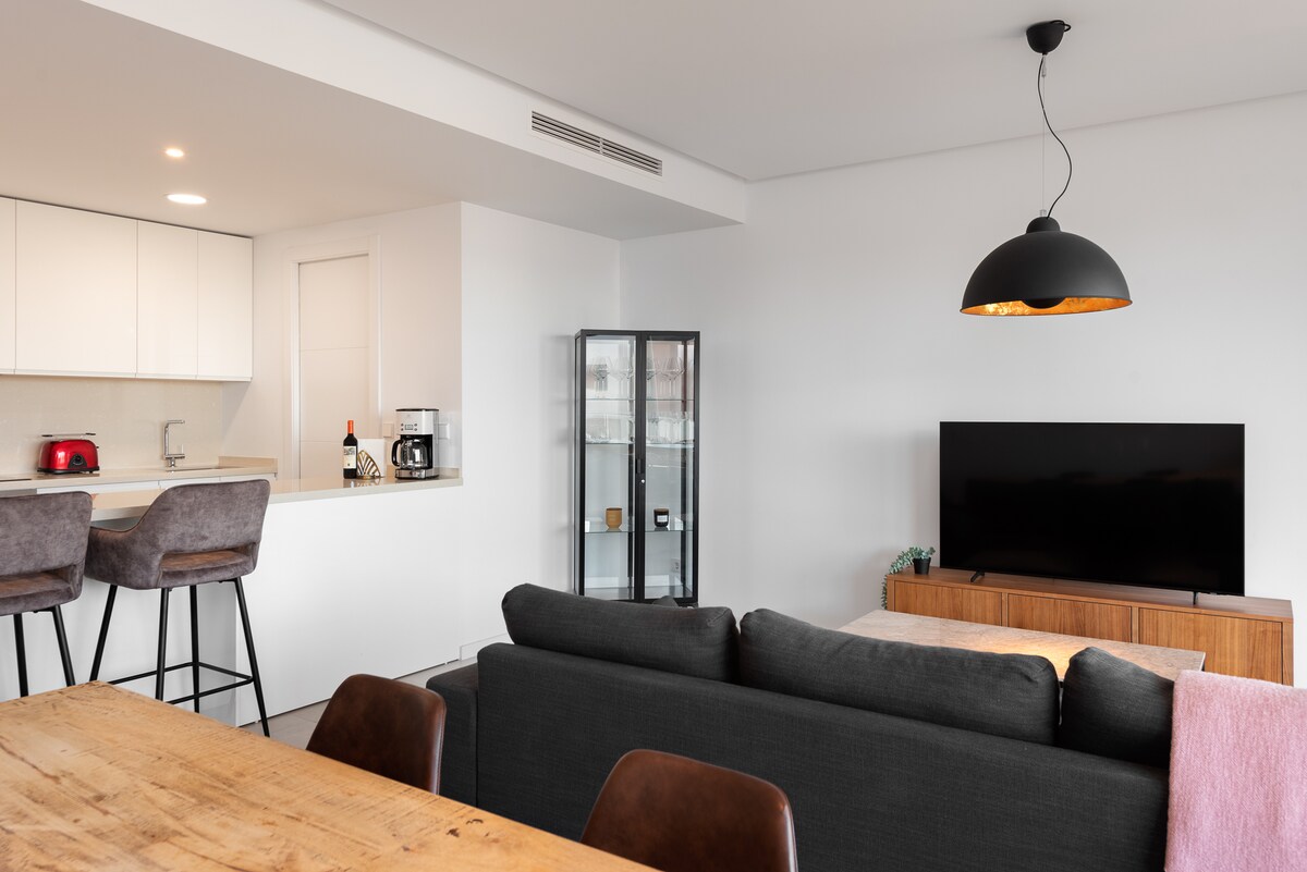 ⚠️ Imajte na umu: Zajednički bazen je trenutno zatvoren zbog renoviranja do daljnjeg. Uživajte u modernom i elegantnom stanu s pogledom na more koji oduzima dah. Sa otvorenim stambenim prostorom, prozorima od poda do plafona, prostranim balkonom sa dnevnim boravkom. Glavna spavaća soba ima sopstveni apartman, drugu spavaću sobu i kupatilo. Parking, Wi-Fi i potpuno opremljena kuhinja pružaju udoban boravak.